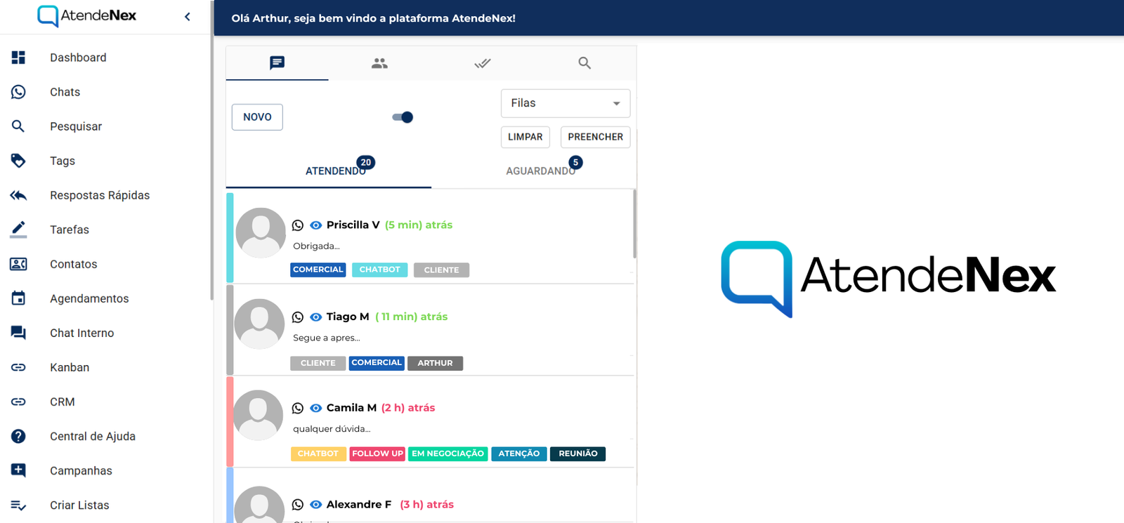 Com a AtendeNex você organiza conversas, responde mais rápido e