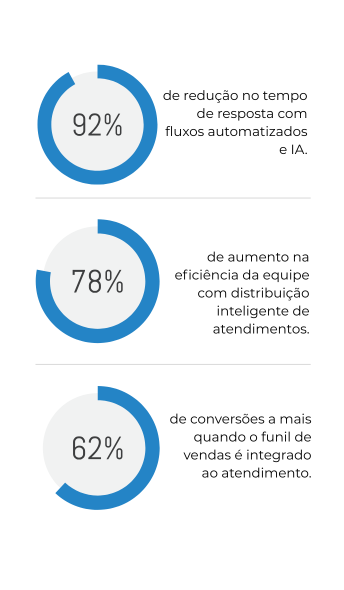 As conversas são encaminhadas automaticamente para o atendente ideal. Mais agilidade, menos fila e uma gestão muito mais eficiente